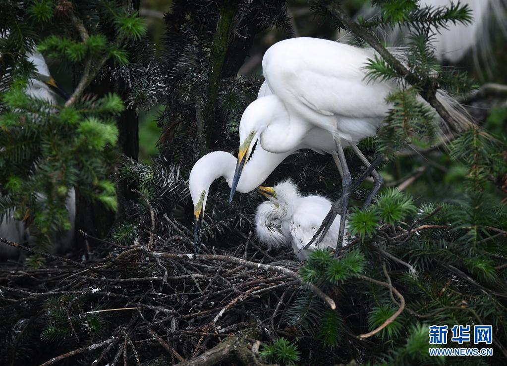 近期,在位于鄱陽湖畔的江西省南昌市新建區象山森林公園內,已安家筑巢的鷺鳥進入孵化哺育旺季。象山森林公園有著“鷺鳥王國”的美譽,每年都會吸引白鷺、蒼鷺、夜鷺等種類的鷺鳥飛抵棲息和繁衍后代。
