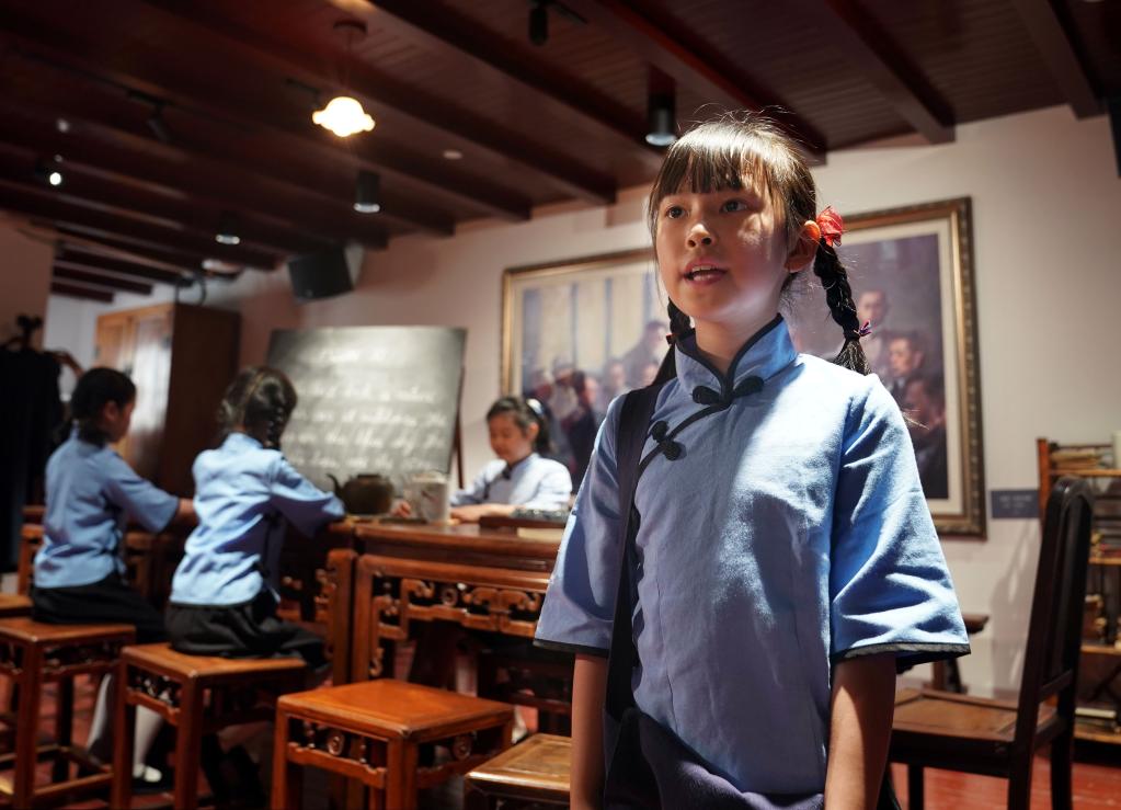 5月31日,全新布展提升后的中共四大紀念館重新開館,首批“小紅花”小小講解員進行了專場情景劇的首演。新華社記者 劉穎 攝