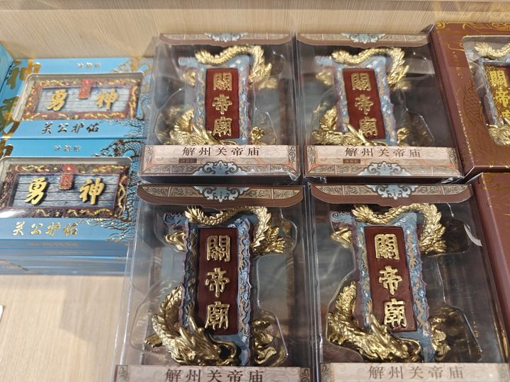 解州关帝庙内展示的关公主题文创产品(9月23日)。新华社记者杨晨光 摄