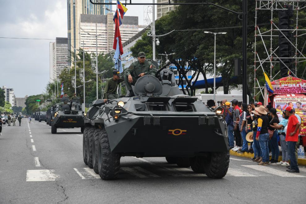 9月23日,在委内瑞拉首都加拉加斯,参加游行的装甲车辆列队行进。新华社发(马科斯·萨尔加多摄)