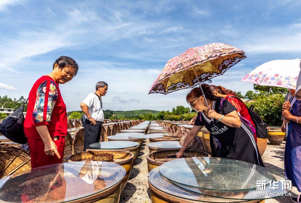 7月10日,游客在畢節市金沙縣禹謨鎮泡木灣醬醋基地參觀。新華社發(范暉攝)