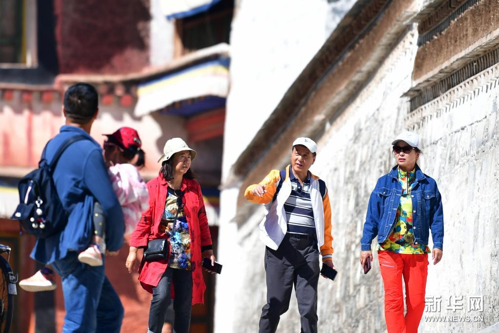 7月12日,游客在拉卜楞寺參觀。新華社記者 杜哲宇 攝