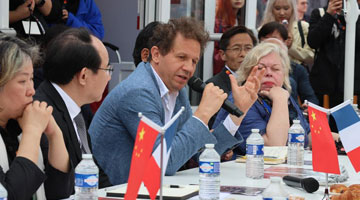 5月18日,在伊朗德黑兰,伊朗国家博物馆馆长杰布拉尔·诺坎德在介绍展出的古泥板情况。