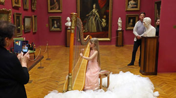 5月20日,西藏传统民族音乐会《吉祥妙音》演出结束后,观众为演员们精彩的演出鼓掌喝彩。