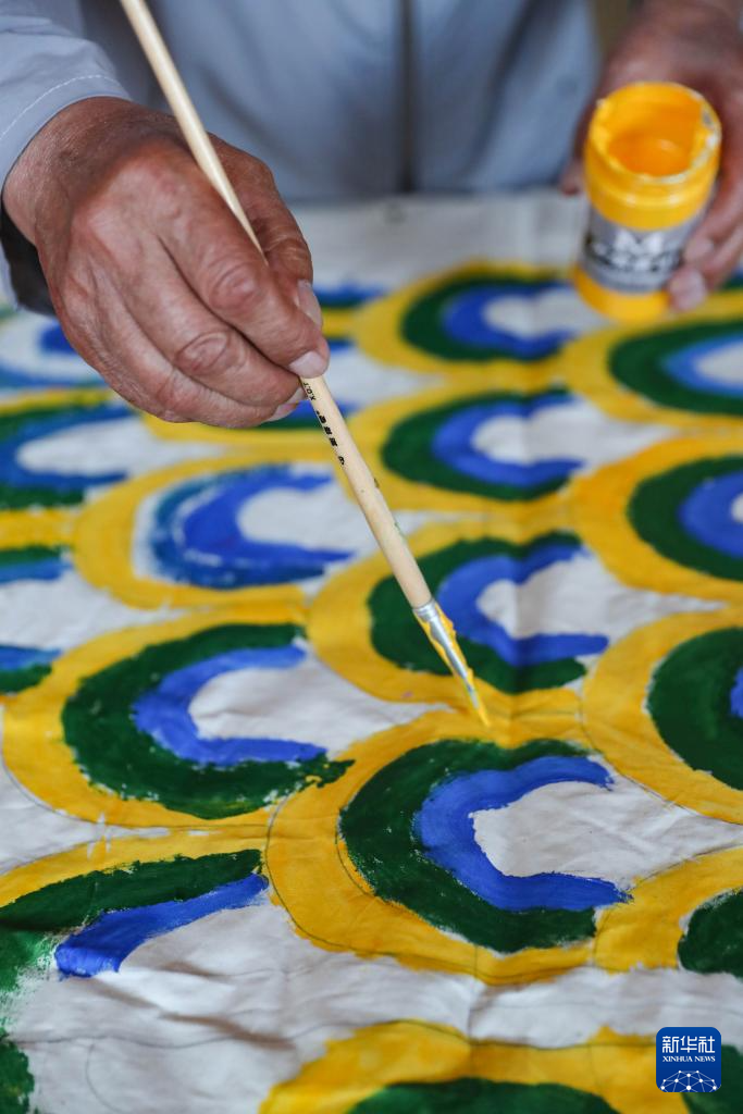 6月3日,张仲发在位于沈阳市沈北新区虎石台街道的非遗工作室中绘制龙皮。