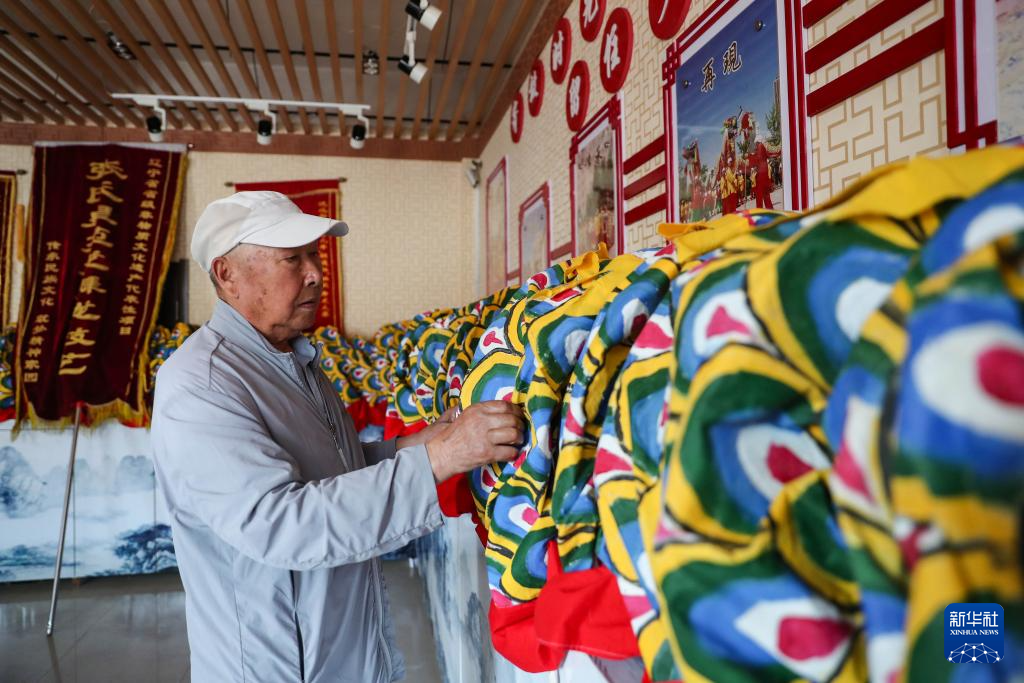 6月3日,张仲发在位于沈阳市沈北新区虎石台街道的非遗工作室中检查龙皮。