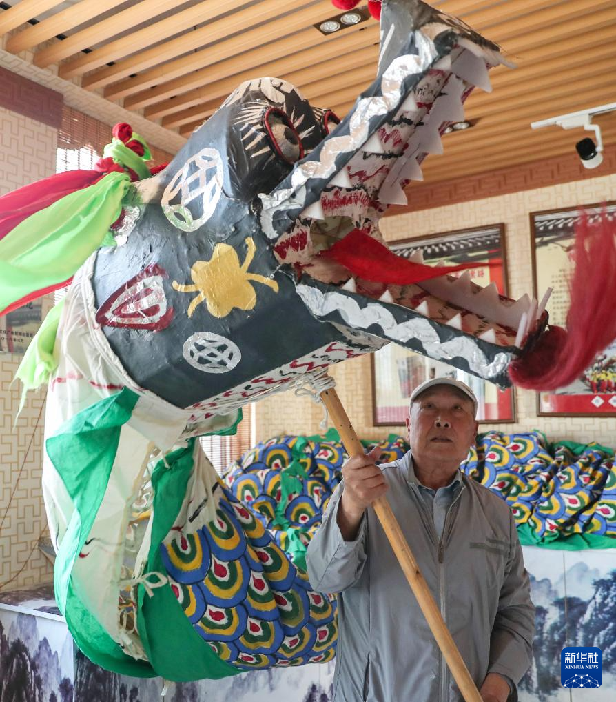 6月3日,张仲发在位于沈阳市沈北新区虎石台街道的非遗工作室中展示龙头。