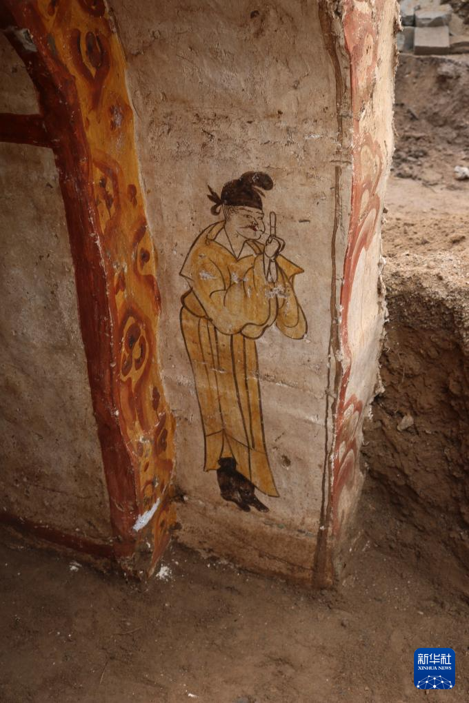 这是墓室东壁南侧壁画(资料照片)。新华社发(太原市文物保护研究院晋阳古城研究所供图)