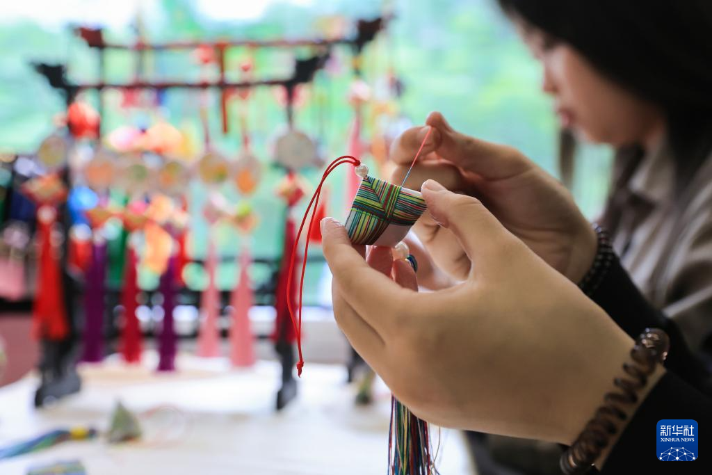 6月5日,在G7393次列车上,旅客体验制作端午彩粽。