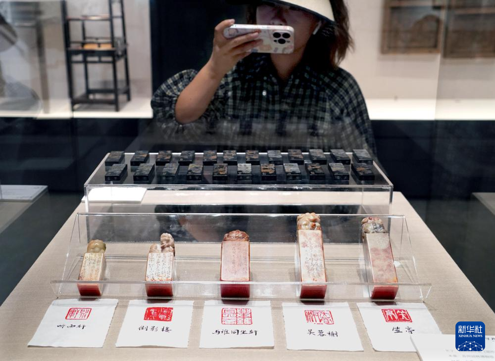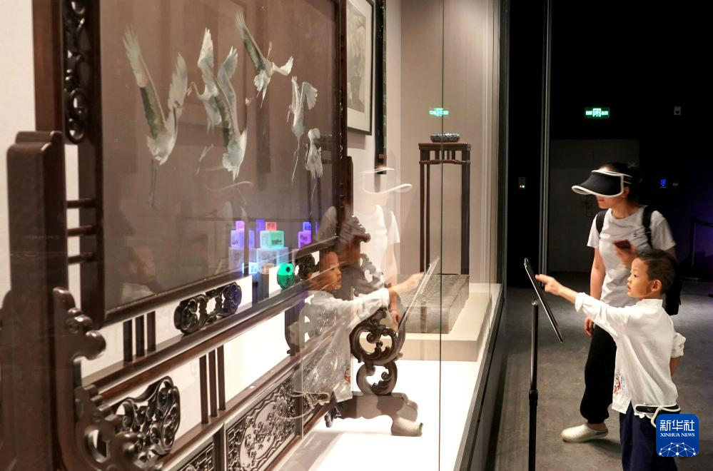 6月10日,市民在郑州商代都城遗址博物院里拍摄苏州园林美学展上的展品。