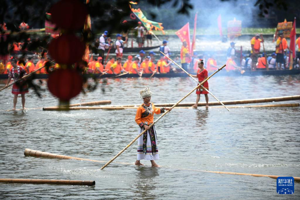 6月10日,第十四届“荔枝湾·新西关”民俗文化活动之“五月五·龙船鼓”在广州荔湾湖公园举行。这是活动中的非遗项目独竹漂表演。