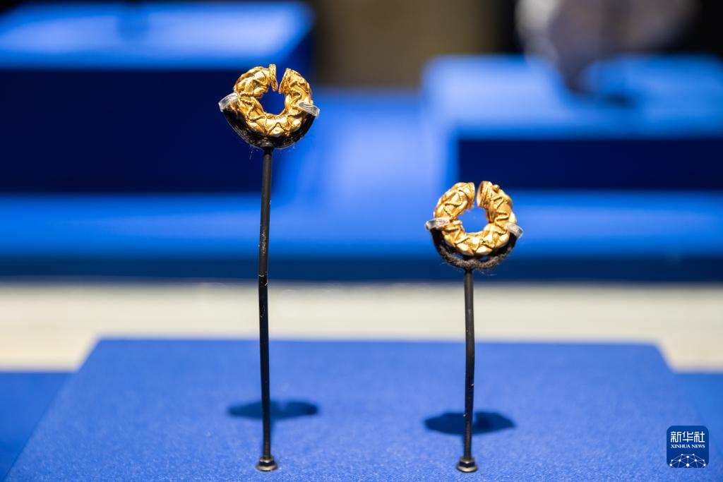 6月12日,在“古波斯的荣耀——伊朗文物精华展”上拍摄的金耳环。