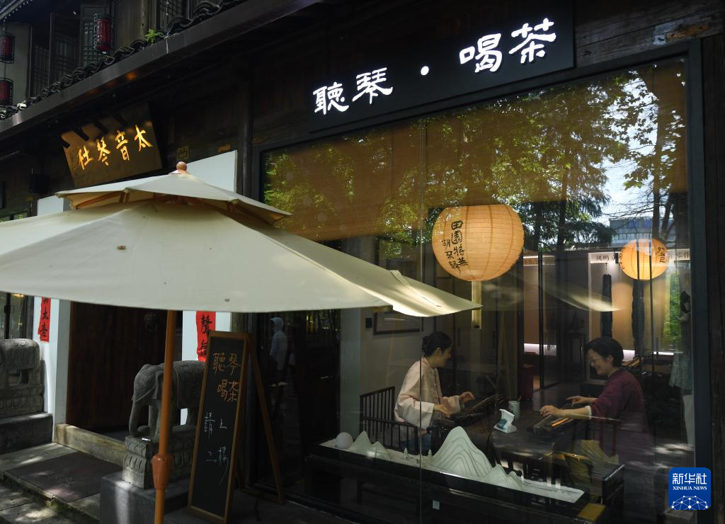 6月12日,在杭州大兜路历史文化街区一家古琴馆,老师带着学生练琴。