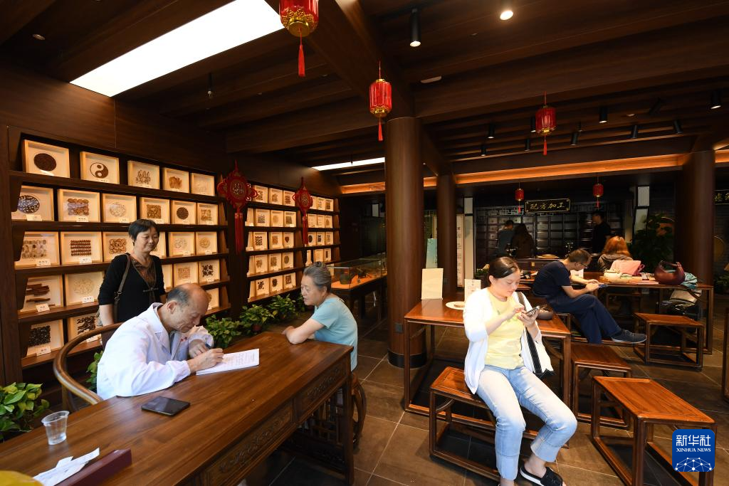 6月12日,人们在杭州桥西历史文化街区的老字号药店“方回春堂”问诊。