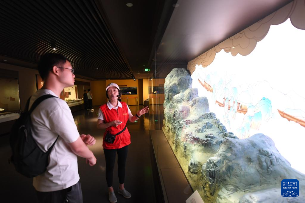 6月12日,讲解员在杭州京杭大运河博物馆给参观者介绍运河历史。