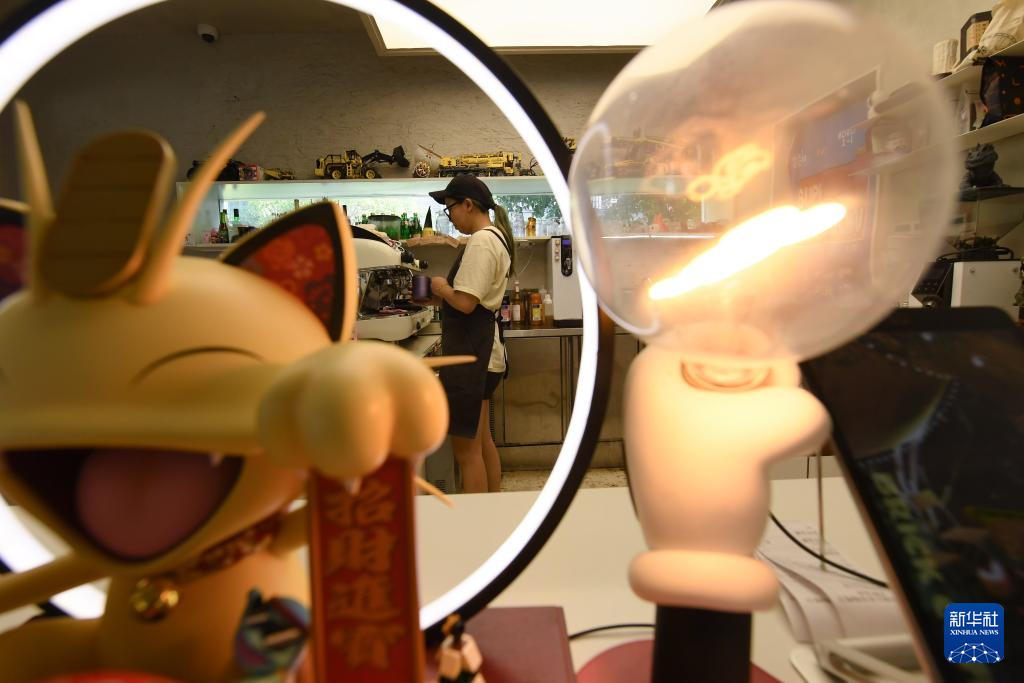 6月12日,人们走进杭州桥西历史文化街区一家潮玩主题的咖啡馆。