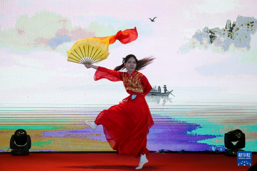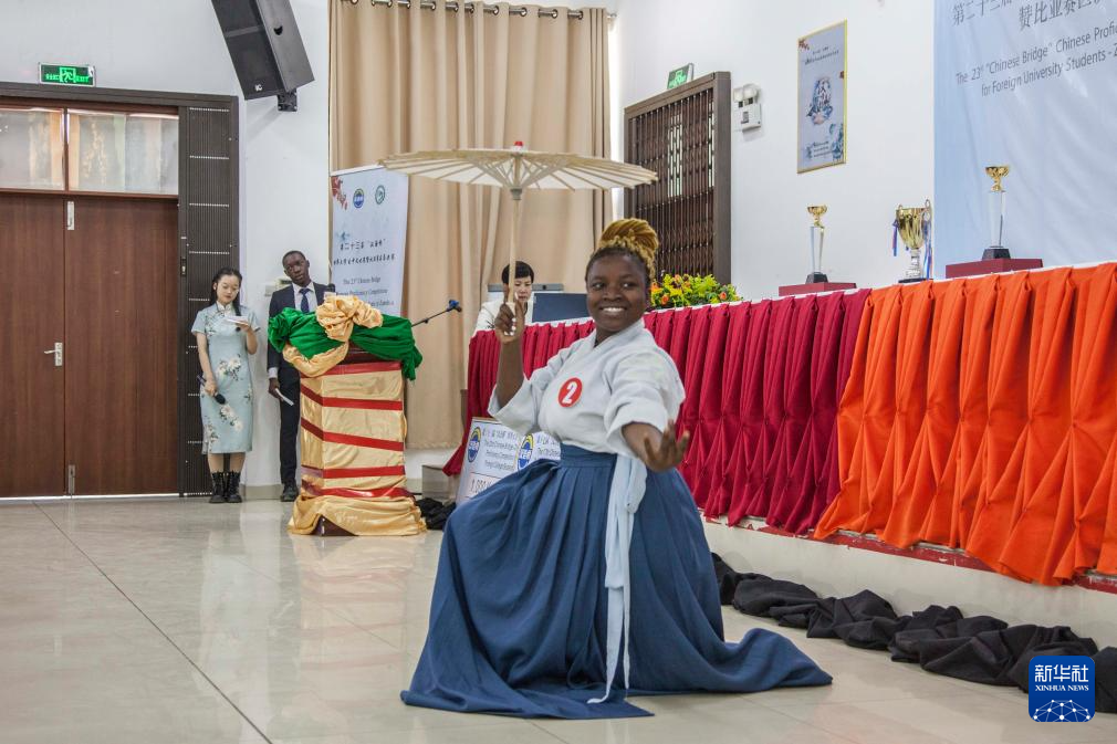 6月7日,一名学生在赞比亚卢萨卡举行的“汉语桥”世界大学生中文比赛和世界中学生中文比赛中表演舞蹈。