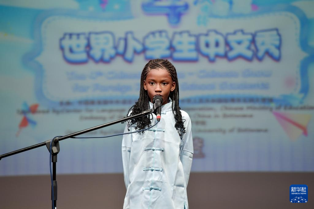 6月7日,一名选手在哈博罗内举行的“汉语桥”博茨瓦纳小学生中文秀比赛上表演朗诵。