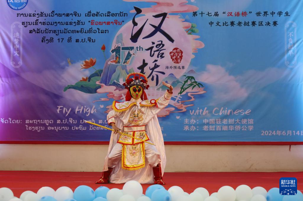 6月14日,在老挝占巴塞省巴色市,参赛选手在第17届“汉语桥”世界中学生中文比赛老挝赛区决赛上展示才艺。