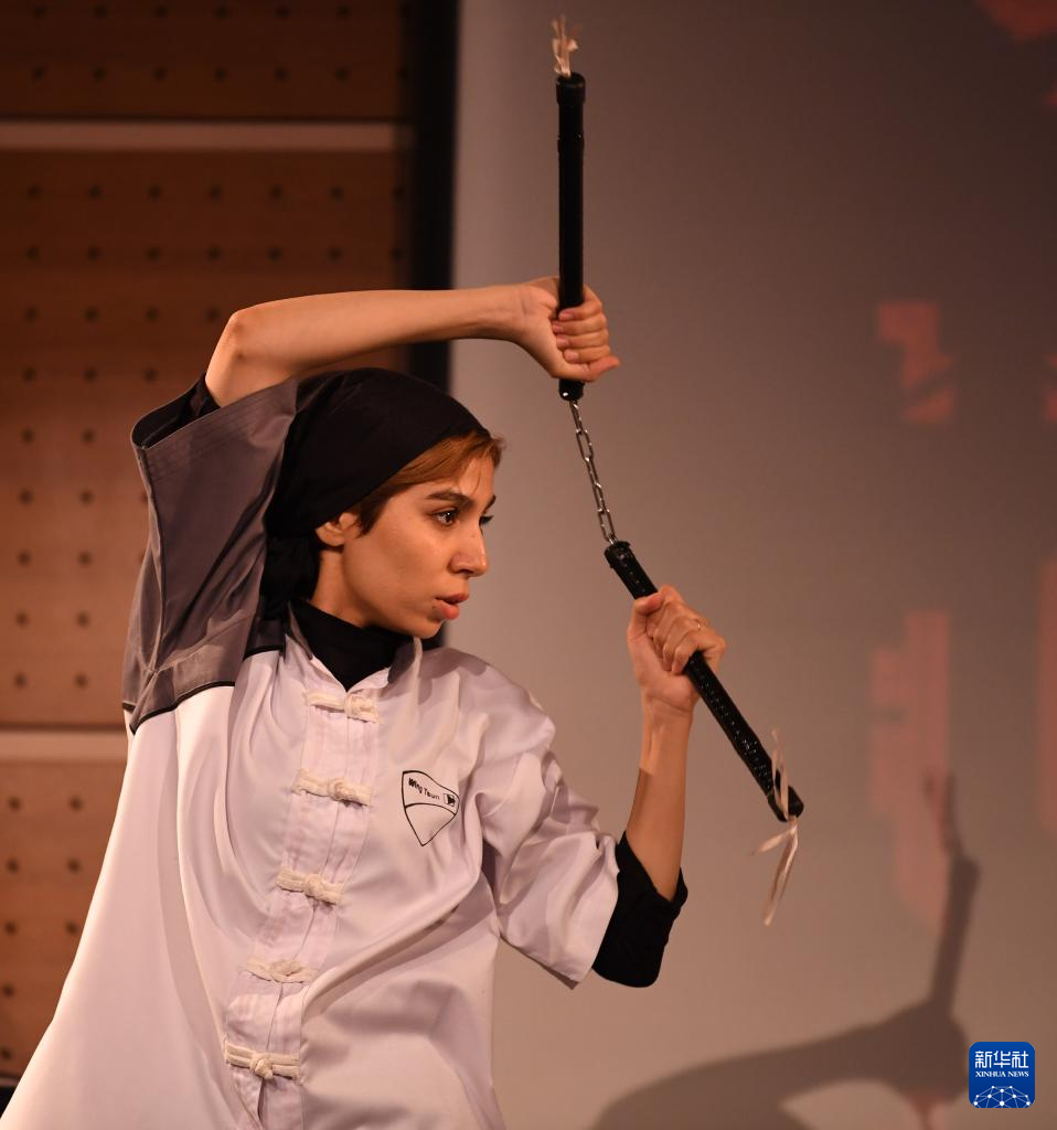 6月10日,在伊朗德黑兰举办的“汉语桥”世界大学生中文比赛伊朗赛区决赛上,获伊朗赛区决赛第一名的选手白月光(中文名)参加才艺环节比赛。