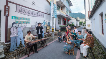6月18日,在第十二届中国杂技金菊奖全国魔术·滑稽比赛开幕式上,济宁杂技团演员表演滑稽《岁月》。