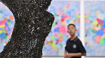 6月18日,在第十二届中国杂技金菊奖全国魔术·滑稽比赛开幕式上,欢乐谷艺术团演员艾合买提表演魔术《炫动时刻》。