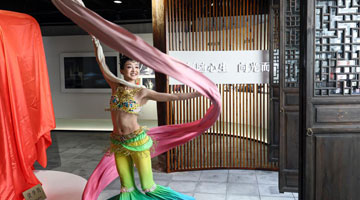 6月18日,在第十二届中国杂技金菊奖全国魔术·滑稽比赛开幕式上,上海杂技团演员刘明亚表演魔术《妙韵——手彩》。