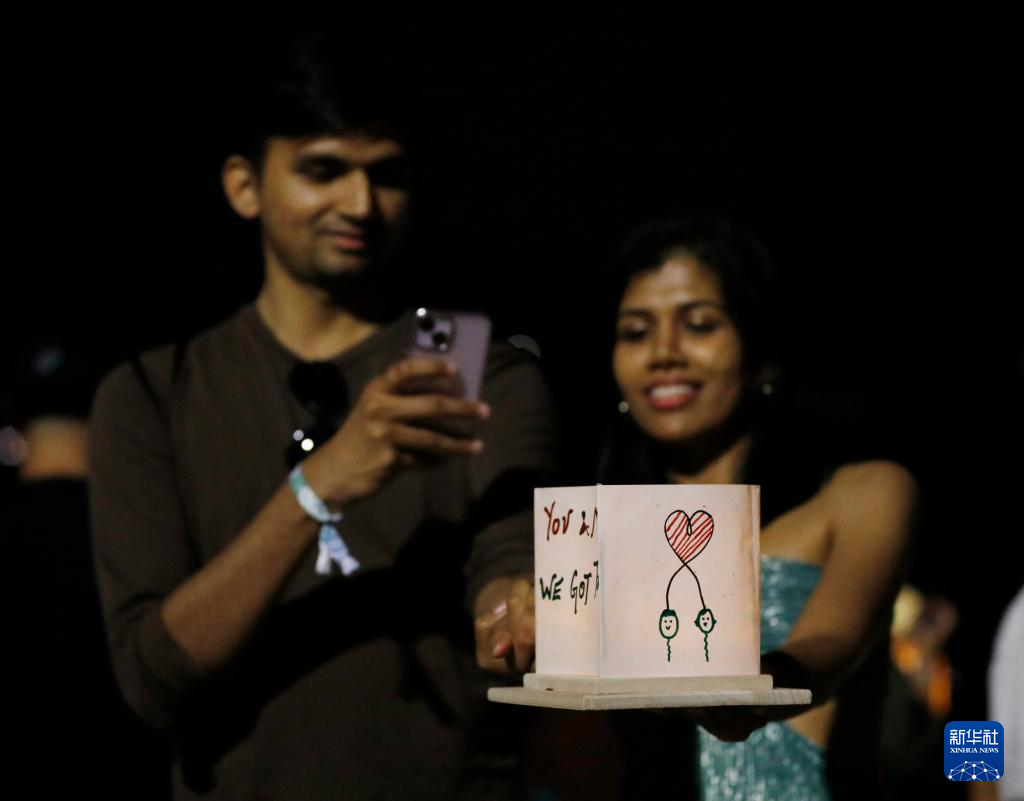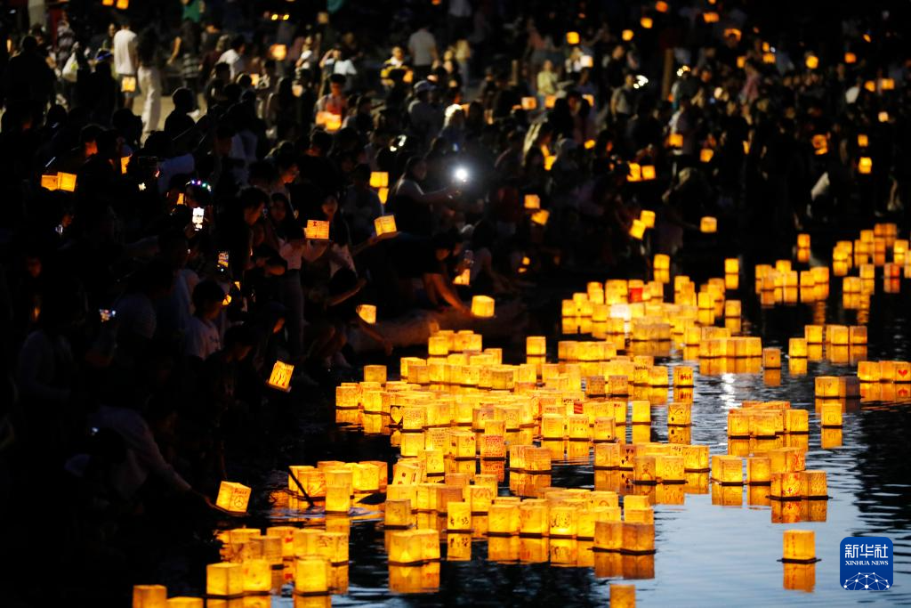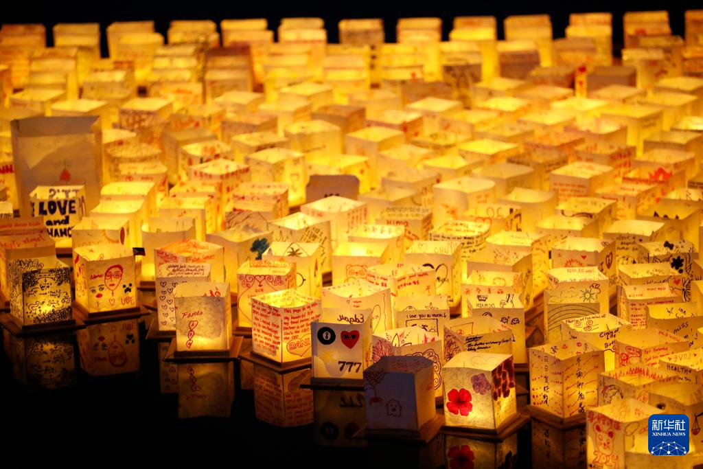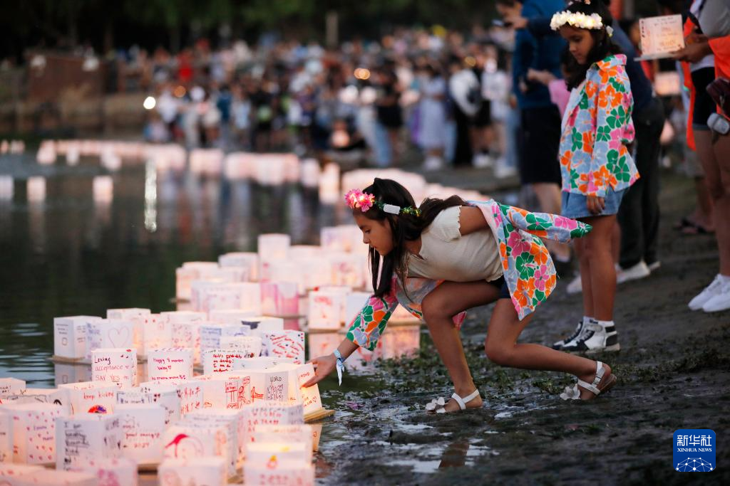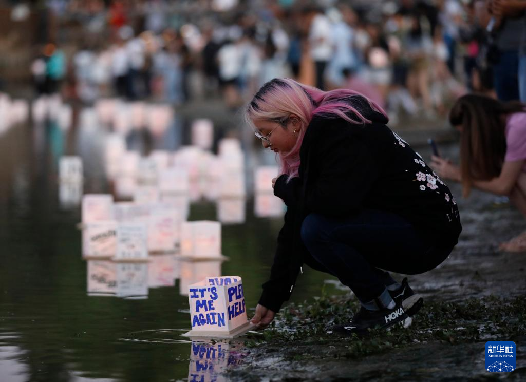 当日,美国加利福尼亚州旧金山湾区圣何塞举行水灯节,人们通过放水灯表达美好祝愿。