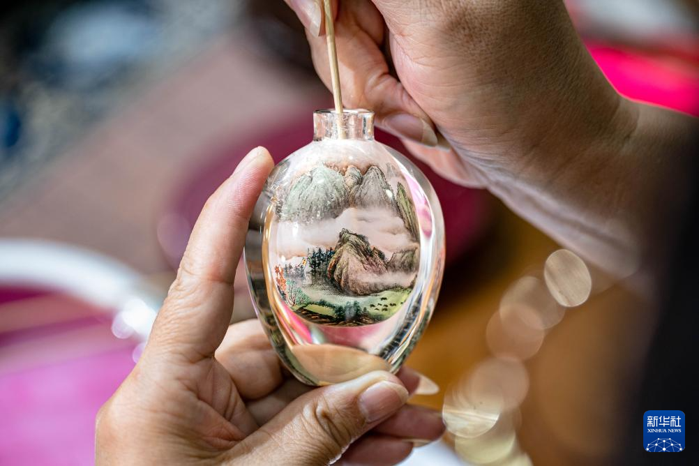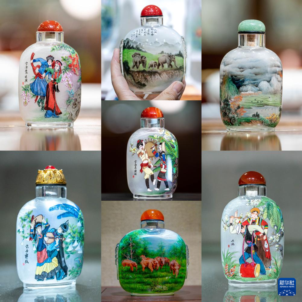 内画是我国特有的传统工艺。画师把特制的画笔,伸入狭窄的瓶口反向绘画,将大千世界镶嵌于方寸之间。“滇派内画”是现代内画技艺中一种独具云南风情的派别。