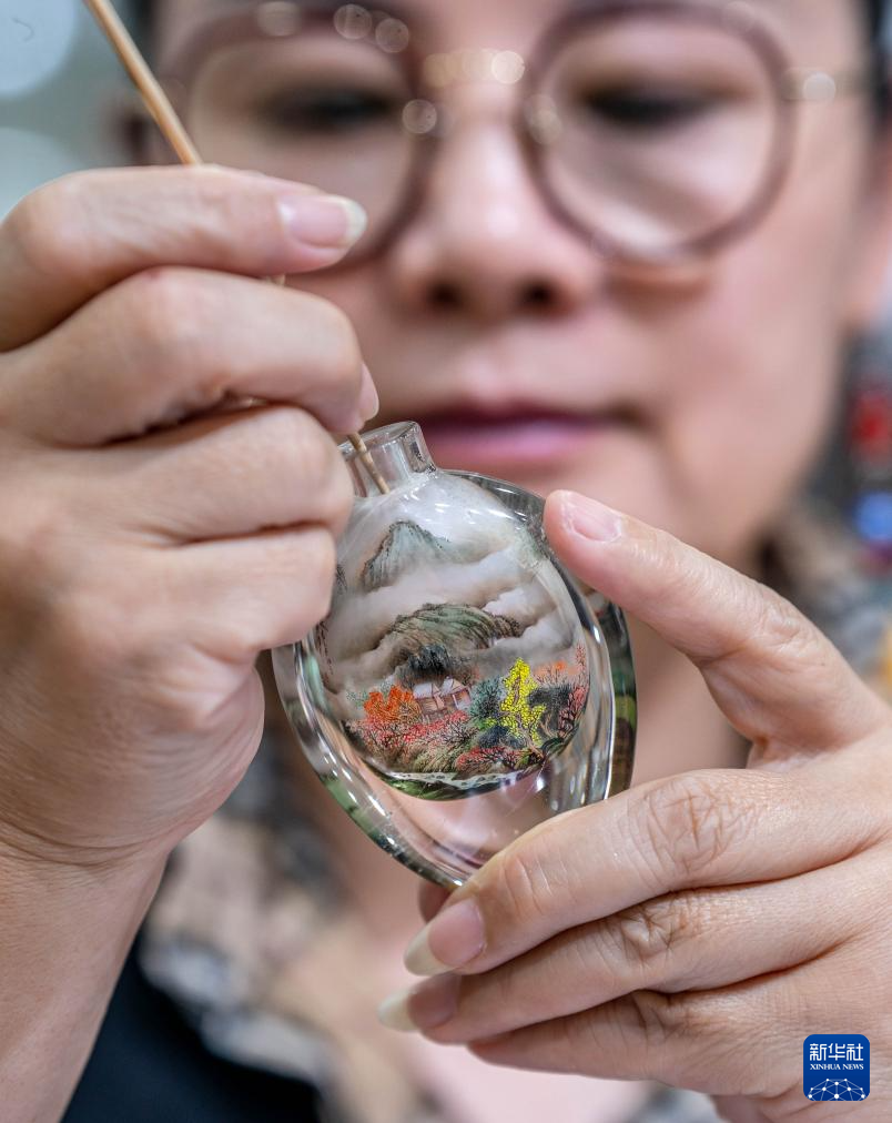 滇派内画在坚守传统技艺的同时,通过颜料、工具的创新,以及紧跟时代的设计风格,收获了许多年轻人青睐。“作为文化载体的非遗技艺也要与时俱进,接纳并满足不同时代的社会需求,在不断创新中把古老技艺传承下去。”孙鸿雁说。