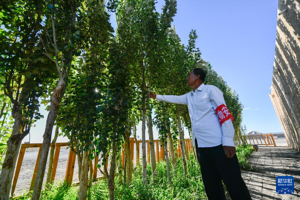 后来,得益于敦煌加强文保力量,他的妻子闻春瑜也成为一名文保员。从此,他们夫妻二人便扎根大漠,像古代戍边战士一样守护长城。他们在房前屋后种下白杨树,浇灌出一片菜园,为生活增添点点绿意与希望。