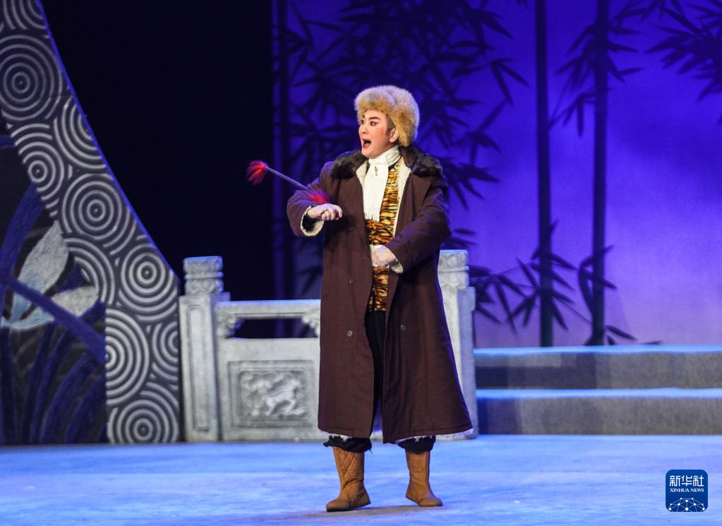 8月29日,京剧演员在吉林市人民大剧院表演京胡协奏曲《迎春》。