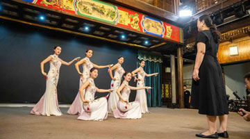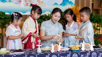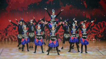 9月8日,小朋友们在南川楼文化街区表演集体六合拳。
