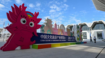 楚蒙丹在位于洛阳市的非遗体验馆里查看一件传统饰品,学习辑珠技艺的手法和配色(9月12日摄)。