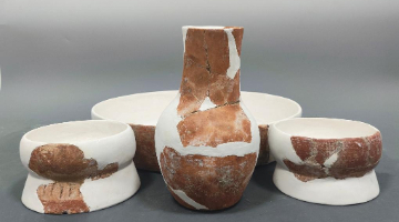 楚蒙丹在位于洛阳市的非遗体验馆里搭配珍珠辑珠胸针(9月12日摄)。