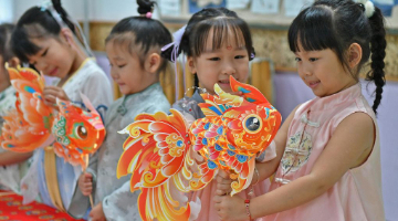 楚蒙丹(右一)在位于洛阳市的非遗体验馆里指导徒弟(9月12日摄)。