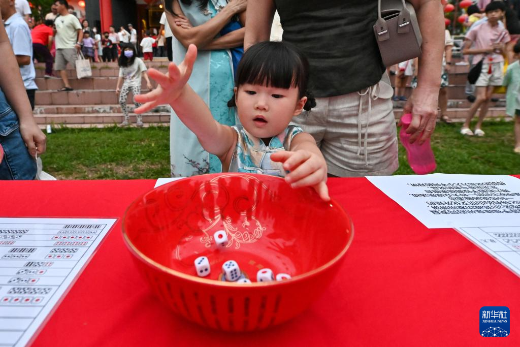 中秋临近,在福建厦门和马来西亚巴生举办的中秋庆祝活动上,博饼游戏都吸引了不少人参与。在游戏中,人们通过掷骰子赢取各式各样的饼及生活用品。饼为圆形,人们玩博饼游戏时围在一起,取中秋团圆之意。