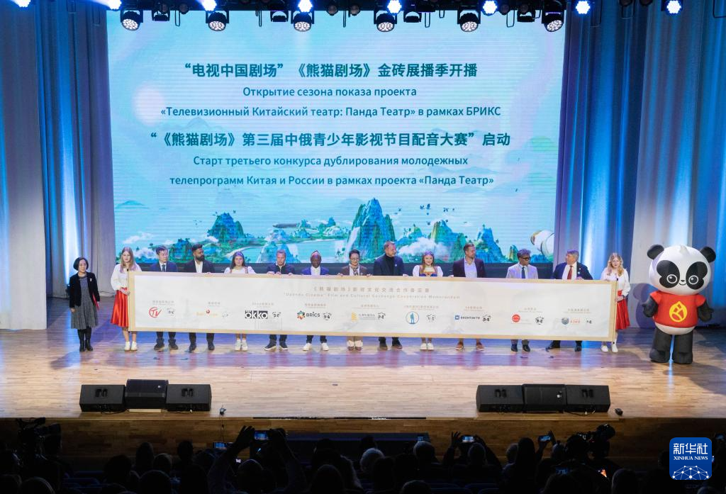 9月22日,在俄罗斯首都莫斯科,金砖国家媒体机构代表共同启动《熊猫剧场》“金砖展播季”。