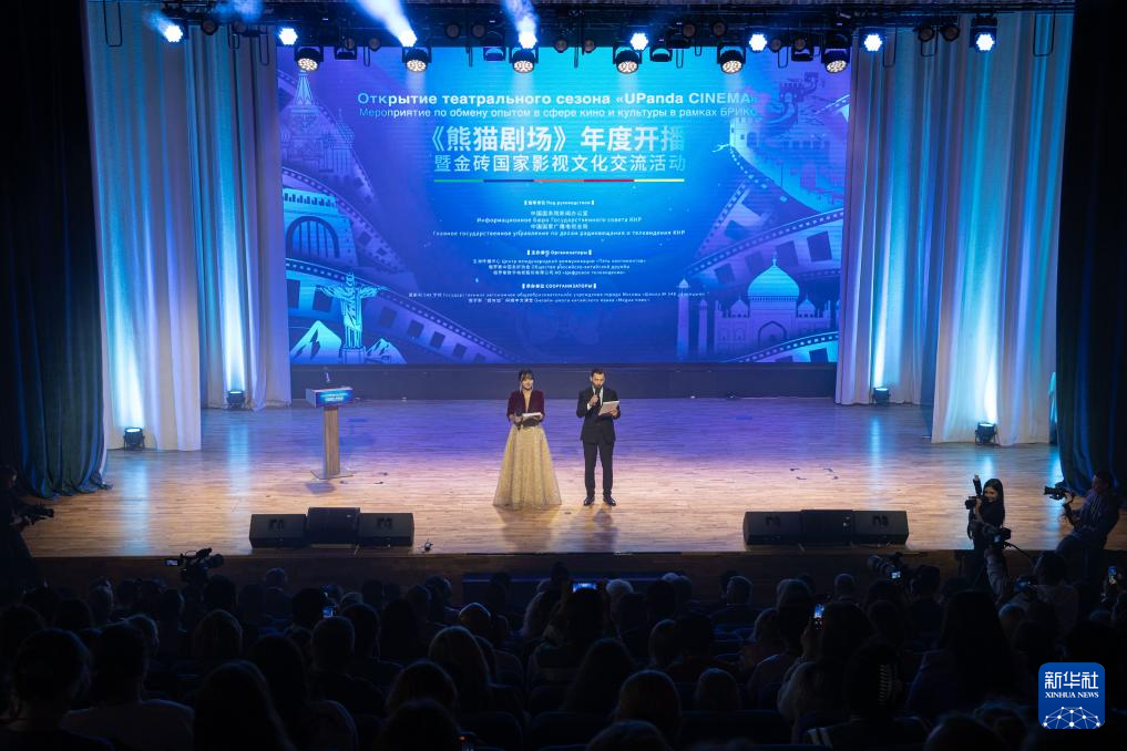《熊猫剧场》年度开播暨金砖国家影视文化交流活动当地时间9月22日在莫斯科举行,来自中国、俄罗斯、巴西、印度、南非等金砖国家的相关部门、媒体影视机构代表及青少年代表900余人参加。