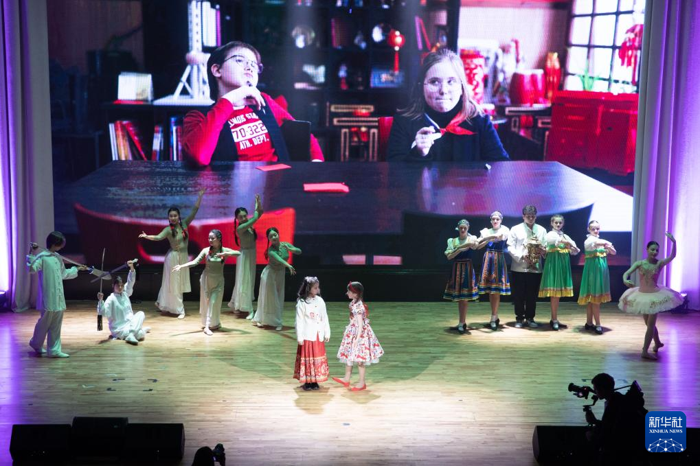 9月22日,在俄罗斯首都莫斯科,中俄青少年表演节目。