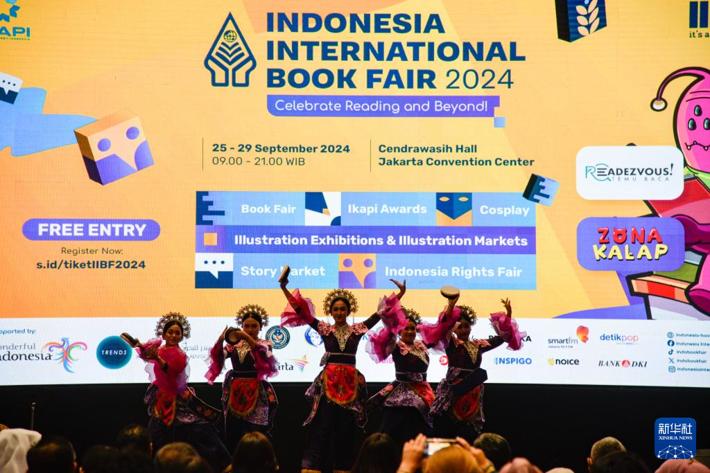 9月25日,在印度尼西亚雅加达会展中心,舞者在印尼国际书展开幕式上跳舞。