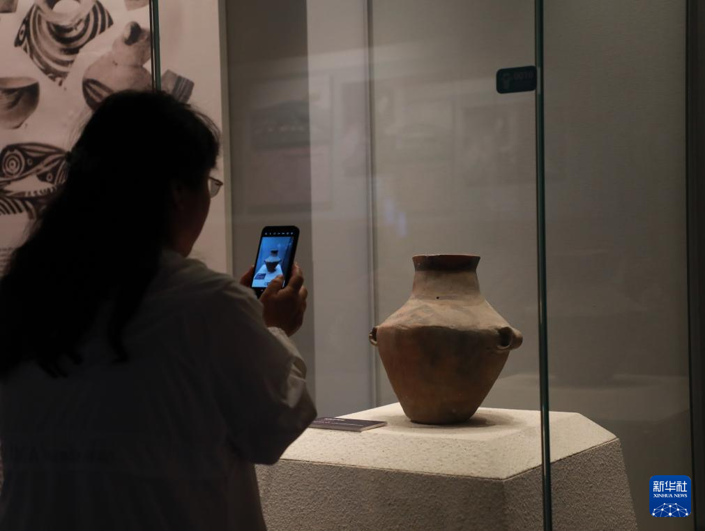 这是9月26日拍摄的安特生返还文物马家窑双耳彩陶罐。
