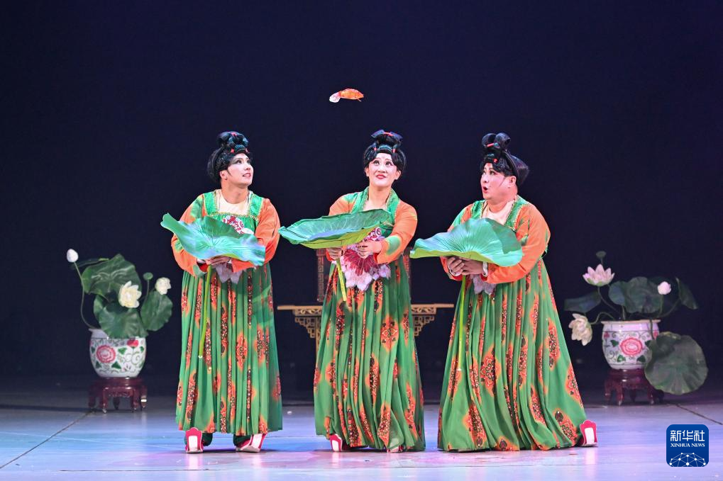 9月25日,天津市杂技艺术有限公司的演员表演魔术《鱼韵流芳》。