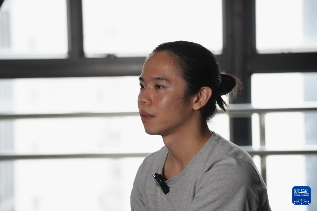 香港舞蹈团首席舞蹈员王志昇在接受记者采访(9月24日摄)。新华社发(谭佳铭 摄)