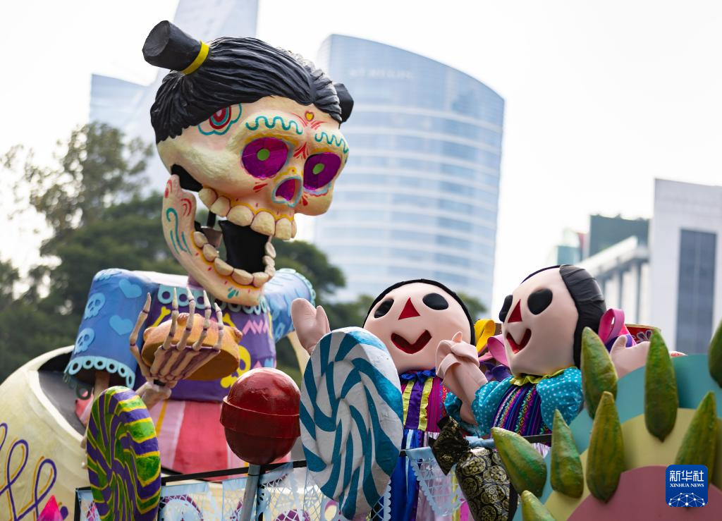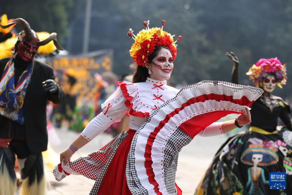 这是11月2日在墨西哥首都墨西哥城拍摄的亡灵节游行现场。