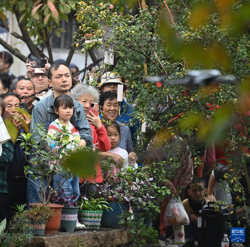 11月16日,人们在新市古镇观看舞蹈表演。