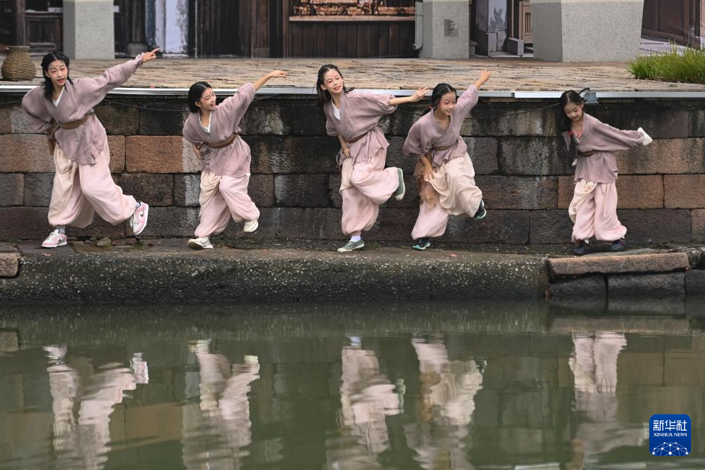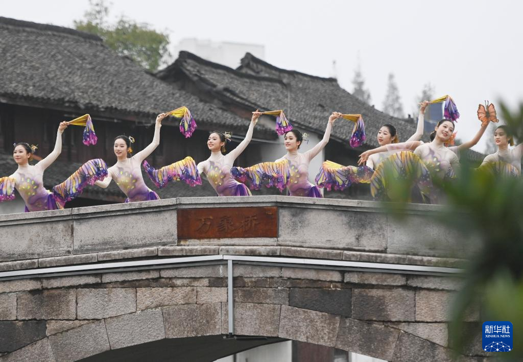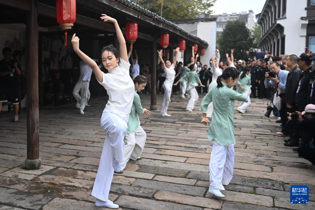 当日,为期3天的新市古镇舞蹈艺术季在浙江省德清县新市古镇开幕。在开幕式“融·古今”环境舞蹈展演环节,演员们以新市古镇为舞台,移步换景,串联表演诸多舞蹈节目,将舞蹈的灵动与古镇的韵味相融合,给观众带来全新的体验。