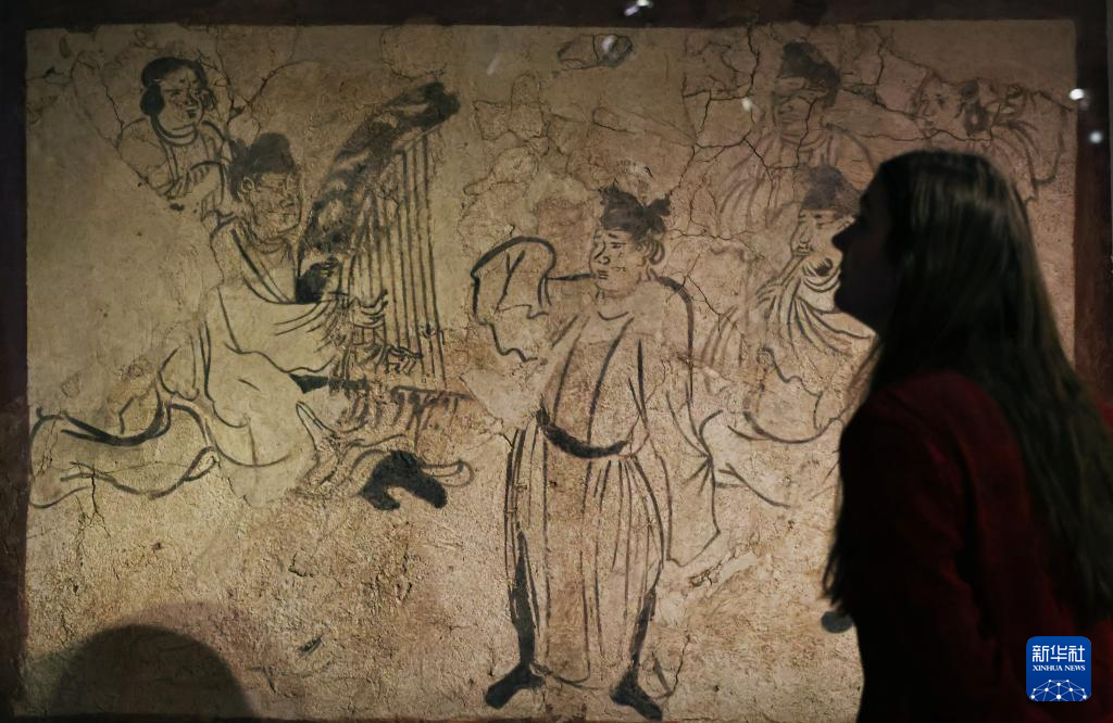 11月18日,在位于法国巴黎的吉美国立亚洲艺术博物馆,一名观众参观“中国·唐——一个多元开放的朝代(7至10世纪)”展览。