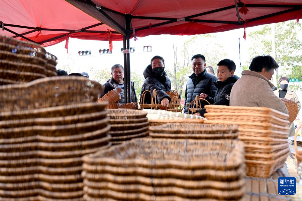11月24日,人们在萧县“十月古会”非遗综合展区参观。