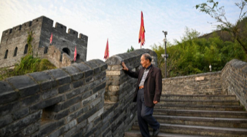 虞金顺在艺术馆观看自己创作的乐清黄杨木雕作品展览(11月25日摄)。